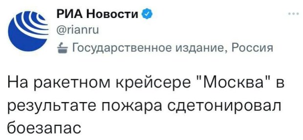 Підписатися- 01.00 МО РФ заявило про пожежу і подальший вибух боєзапасу на крейсері Москва. У відомстві говорять про пожежу на крейсері. Причини пожежі встановлюються.