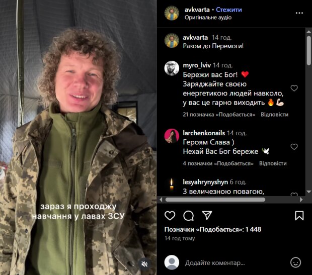 Український автор та виконавець Олександр Кварта офіційно розпочав службу у Збройних Силах України. Артист розповів, що зараз проходить військову підготовку, наголосивши, що його роль тепер безпосередньо пов'язана з обороною, а не за участю у волонтерських програмах.