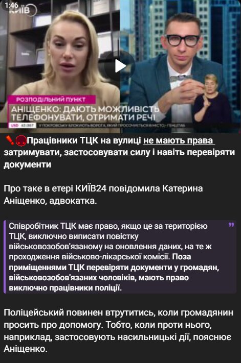 Сотрудники ТЦК и СП Украины не имеют права задерживать граждан, применять физическую силу или требовать документы, находясь вне служебных помещений самого ТЦК.
